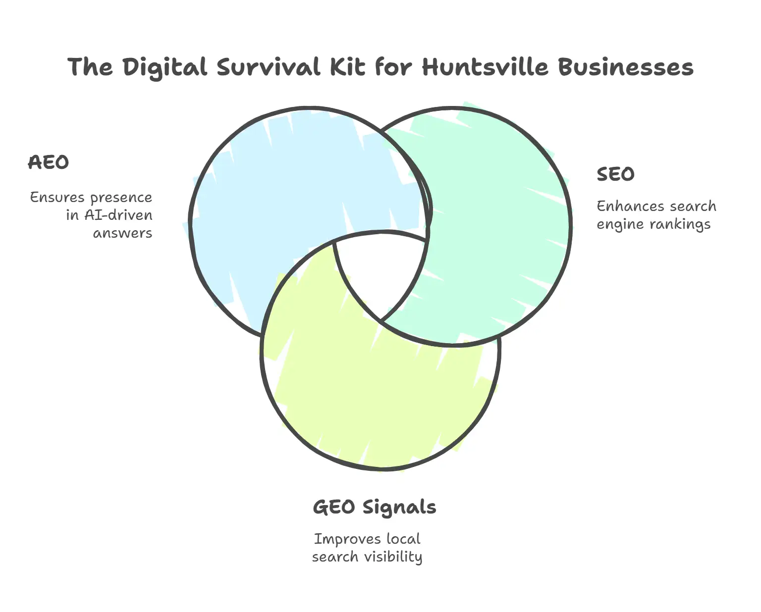 For Huntsville businesses, SEO–GEO–AEO isn’t optional—it’s survival.