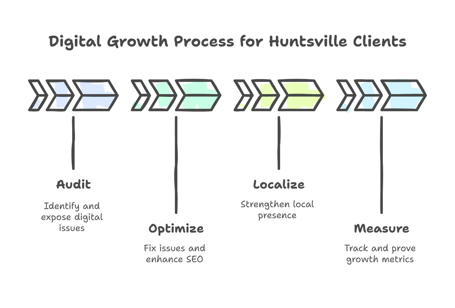 Instead of chasing quick fixes, you finally get a roadmap that builds lasting visibility and momentum for your Huntsville business.